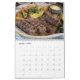 A selection of beautiful photographs of delicious dishes and desserts from different countries printed on a calendar for 2026.