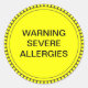 This Food Allergy sticker has text "WARNING SEVERE ALLERGIES" Ideal for young kids, stick to their lunchbox or clothing for a day trip.