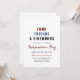 This food friends and fireworks independence day invitation is perfect for a 4th of July celebration. The design features an elegant calligraphy font in black, blue and red.