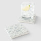 The coasters are gorgeous, a quality feel and heavy weight. They look like a precious archeological find. A rustic stone juxtaposed with a modern floral black and white print. I like the way the print goes slightly imperfect on the cut stone edges giving them a kind-of natural beauty.