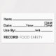 Food Safety Date Label, Record Keeping Stickers