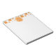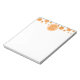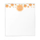 A white notepad with a border of smiling peaches with green leaves. At the top is a name and monogram combination that can be customised. The pad is mostly blank with plenty of space for writing.