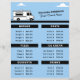 A flyer with an illustration of a food truck with a window, in the background there is a blue sky with some clouds with menu & price list. It will be suitable for street food or catering services. On the back, you can add the places and times when you can be found, as well as a QR code.