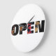 Foodies Open Sign Wall Clock. Great for kitchen or restaurant. Customize with name or business.