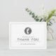 A minimal podiatrist/ foot doctor-themed thank you flat card featuring a simple black, grey and white monochrome design. It features a paw symbol inside of a dark circle highlighted above your own custom text. On the reverse side is an additional area for your own specific thank you message. All elements and unlocked and adjustable by using the edit/customisation function so enjoy being creative and making it your own.