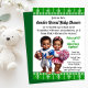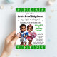 Get ready to huddle up and celebrate an exciting gender reveal party with this adorable football-themed baby shower invitation. Featuring a cute baby football player in a blue uniform and an adorable baby cheerleader in pink, this invite sets the perfect scene for a game-day gender reveal party. The green football field background and playful wording is perfect for your big news!