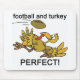 This funny design shows a turkey about to catch a football with the words "football and turkey PERFECT!", great gift for Thanksgiving!