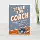 Football Ball Helmet Cartoon Coach Thank You Card. Show your appreciation with this fun and heartfelt football thank you card designed just for coaches! Featuring a bold cartoon illustration of a football and helmet in orange, grey and white, this card is perfect for youth teams or individual players. Great for end-of-season gifts, or just to say thanks to an inspiring coach. Add your message inside or erase it.