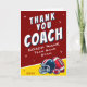 Football Ball Helmet Cartoon Coach Thank You Card. Show your appreciation with this fun and heartfelt football thank you card designed just for coaches! Featuring a bold cartoon illustration of a football and helmet in red, gold and white, this card is perfect for youth teams or individual players. Great for end-of-season gifts, or just to say thanks to an inspiring coach. Add your message inside or erase it.