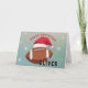 Football Ball with Red Santa Hat Name Christmas Holiday Card