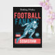 a birthday card especially for that Football fanatic who introduces the game to every conversation, loves to watch every game and knows all the stats. So if they eat, sleep , repeat football this celebration card is just for them. A retro blue and red color scheme with a player running with the ball. This makes a great gift for birthdays, game days, fathers day etc. Easily personalize the name year and inside text with the template provided.