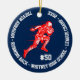 Create a personalised football ornament for your favourite school team player. Features a running football player going all the way to score a touchdown! Add your players team number, championship status, year, school name or other customised text. Black , white and red design is perfect for your holiday Christmas tree.