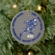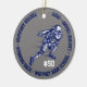 Create a personalised football ornament for your favourite school team player. Features a running football player going all the way to score a touchdown! Add your players team number, championship status, year, school name or other customised text. Grey , white and blue design is perfect for your holiday Christmas tree.