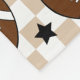 A stylish football-themed sherpa blanket featuring a scattered pattern of footballs and stars on a trendy tan and white chequered background. The warm neutral tones and retro chequered design give this sports throw a modern, boho-inspired feel. The plush sherpa lining adds cosy comfort for game day, football season, or everyday use. Not customisable — this is a ready-to-order pattern design.