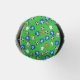 Design is an illustration of blue football shirts, football fans' happy faces, and bouncing balls. Overall pattern in a cartoony style on a green background. This football design shows the colours of the team you follow. Shirts are in blue