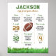 Our football birthday milestone poster is the perfect way to celebrate and document a special birthday. The design features a unique and memorable sport theme with space for your child’s name, special milestones, achievements, and memories from their life so far. It’s a great way to celebrate a milestone birthday and to create a lasting memento of the special occasion. This milestone isn’t only a unique decoration, as party guests will have the opportunity to learn more about you child’s first year and their growing personality.