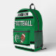 Green, Black and White Jersey Striped Football Backpack. A great gift for anyone that loves football. ⭐This Product is 100% Customisable. Text and background colour can be change. Graphics and / or text can be added, deleted, moved, resized, changed around, rotated, etc... 99% of my designs in my store are done in layers. This makes it easy for you to resize and move the graphics and text around so that it will fit each product perfectly. ⭐ (Please be sure to resize, change, add, delete or move any graphics or text if needed before ordering) You can also "TRANSFER DESIGN" on other Zazzle products and adjust the design to fit most of Zazzle items. (button is down on the right side of the page) Some of the text graphics have ready to fill in the box(es) or you can Click on the "CUSTOMIZE" button to add, move, delete, resize, background colour or change any of the font or graphics. The design is made with high resolution vector and/or digital graphics for a professional print. ⭐NOTE: (THIS IS A PRINT. All zazzle product designs are "prints" unless otherwise stated under "About This Product" area) The design will be printed EXACTLY like you see it on the screen and on the product...so please make sure when you do your changes on the resizing of any of the graphics or text that it fits in the areas correctly and that your spelling and wording is how you like it to be in size, colour and font. If you have any questions about the "DESIGN ONLY" or need help please contact ME DIRECTLY at siggyscott@comcast.net or visit my store link: https://www.zazzle.com/store/designsbydonnasiggy (Copy and Paste) I'll be happy to help. ⭐ ALL OTHER QUESTIONS SUCH AS (shipping, refund, the printing being incorrect, the product itself, etc...) please contact Zazzle or the Maker ⭐DIRECTLY⭐. Thank you for the support and stopping by my store - DesignsbyDonnaSiggy. © Donna Siegrist⭐⭐⭐ ZAZZLE promises 100% satisfaction.