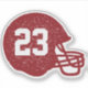 Football fans and players will appreciate this simple helmet silhouette with a distressed texture and custom text area where you can put a number, year, team or personal initial. Make it you - make it yours! The classic maroon red and white colours are perfect for a lot of teams, but other colour combinations are available. This personalised football helmet sticker is great for high school athletes and also middle school, youth and more!