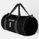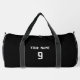 Introducing our sleek black duffle bag, a must-have for football lovers! With a bold football logo on one side, it shows off your passion for the game. Personalise it by adding your team name or the recipient's name on the other side, making it a special gift. This durable bag is perfect for carrying football gear or as a stylish travel companion. Get ready to hit the court or travel in style with our customisable black duffle bag!