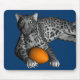 wonderful grey wildcat protects a rugby ball - better watch out and don't try to take it away