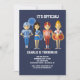 A football-theme invitation to join the party featuring the blue team and the gold team. (<a href="https://www.freepik.com/free-vector/flat-teenagers-football-characters_842821.htm">Designed by Freepik</a>). <br/><br/>The card is easy to customise with your wording, font and font colour.<br/><br/>Not exactly what you're looking for? All our products can be custom designed to meet your needs at no extra charge.<br/><br/>Simply contact us at heartfelthelper@gmail.com.<br/><br/>Coordinating products available: Just ask us!