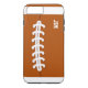 Custom iPhone 7 Plus case done in a football brown, with white stripes and white laces, like on a football. Personalise the white text for yourself or as a great gift idea for any football fan.