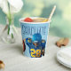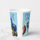 Graduate written in tall blue typography over your senior portrait photo makes a simple graduation paper cup for the graduation party of a football player on a sports team. Customise with your name and high school or university class of 2025.