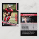 Introducing the American Football Trading Card, a must-have for passionate fans of the gridiron! Embrace team pride with our customisable template, boasting the iconic colours of red, white, and black that symbolise the heart of American football.