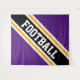 This sporty design features athletic FOOTBALL text inside a highlighted wide diagonal black, white, and golden yellow racing stripes against wide royal purple outer stripes. The text in this design can be personalised.