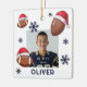 Football Santa Hat Name Photo Christmas Ceramic Ornament