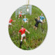 A football match made up of plastic football/soccer players including Referee and Goal Keeper in the grass