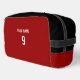 Introducing our sleek red accessory pounch, a must-have for football lovers! With a bold football logo on one side, it shows off your passion for the game. Personalise it by adding your team name or the recipient's name on the other side, making it a special gift. This durable bag is perfect for carrying football gear or as a stylish travel companion.