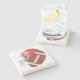 The coasters are gorgeous, a quality feel and heavy weight. They look like a precious archeological find. A rustic stone juxtaposed with a modern floral black and white print. I like the way the print goes slightly imperfect on the cut stone edges giving them a kind-of natural beauty.