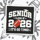 This senior year class of 2026 football design is perfect for high school seniors or college graduates. Great for the senior class football players celebrating their last school year football season before their 2026 graduation! Features "Senior Class of 2026 - It's Go Time!" senior quote in a varsity style athletic font w/ graduation cap & tassel football graphic for the proud 2026 senior class football player. Great for 2026 senior year football games all school year long!