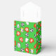 A fun and vibrant cartoon-style illustration shows football fans and their footballs. Overall this is a fun nicely-designed product to use as a favour box. Show the colours of the team you follow. Shirts in red