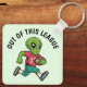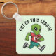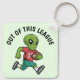 This keychain features a playful design of an alien sprinting with a gridiron football tucked under its arm, ready for action. Paired with the phrase "Out of this League" this accessory is perfect for sports fans, especially football lovers with a fun, intergalactic twist.