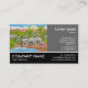 A business card template with a black white edged footer with the upper area masked with a photo and text panel. Photo or art work image on the left (which can also be replaced with your own photo) with a panel for name and details on the right. Space for company name at the left of the footer with Telephone, web and email contact details on the left. Can also be customised for other uses. NB the photo area is masked, if you are replacing the image you may need to adjust the size of your photo.
