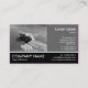 A business card template with a black white edged footer with the upper area masked with a photo and text panel. Photo or art work image on the left (which can also be replaced with your own photo) with a panel for name and details on the right. Space for company name at the left of the footer with Telephone, web and email contact details on the left. Can also be customised for other uses. NB the photo area is masked, if you are replacing the image you may need to adjust the size of your photo.