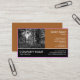 A business card template with a black white edged footer with the upper area masked with a photo and text panel. Photo or art work image on the left (which can also be replaced with your own photo) with a panel for name and details on the right. Space for company name at the left of the footer with Telephone, web and email contact details on the left. Can also be customised for other uses. NB the photo area is masked, if you are replacing the image you may need to adjust the size of your photo.