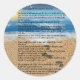 A Painting of a beach with footprints and the poem footprints in the sand.