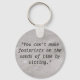 A key chain featuring a photo of beach sand and the words "You can't make footprints on the sands of time by sitting."
