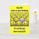 A sad face in a crowd of happy smiling faces. Smile on your birthday!