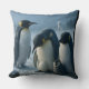 Iron bring the serene beauty of the Antarctic into your home with this emperor penguin family throw pillow the design features a cluster of majestic emperor penguins including a sweet fluffy chick standing against a soft snow filled Arctic landscape with a curious polar bear visible in the misty background, this high detail illustration captures a peaceful moment in the wild