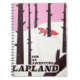 featuring a cute fox in a snowing landscape woodland of Finnish forest vintage travel poster.