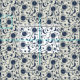 For Banjo Players Blue and Cream Folk Art Pattern Fabric
