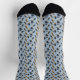 These patterned socks are perfect for bird lovers. These crew socks feature illustrations of kingfishers in blue, mustard gold and white set against a patterned light blue background.