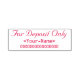 This sophisticated rubber stamp design features the message "For Deposit Only", in addition to a custom personal/business name and account number. It might perhaps be used by an individual or an accounting professional to quickly add a restrictive indorsement to a cheque.