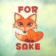 Vector cartoon illustration of a cute little red fox with For Fox Sake text. Keywords: animal, canine, cartoon, cute, fox, foxy, mammal, mascot, red, vector, vulpine, dog, pup, puppy, kit, for, sake