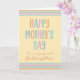A stylish greeting card for your goddaughter on Mother's Day, with 'HAPPY MOTHER'S DAY' in informal capital letters in shades of pale green, blue, terra cotta and pink. There are horizontal stripes at the top and bottom in the same colors and the background is a warm peach color. Lower down, in a handwriting script, it says, 'to a very special Goddaughter' and the inside message is just a suggestion which you can easily change or delete completely if you wish.