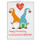 A fun wedding anniversary congratulations greeting card to customize for your husband, with a couple of cute gnomes, based on the traditional 'little folk' of Scandinavian folklore. The male gnome is wearing an orange and yellow tall hat and yellow trousers which are almost hidden by his huge white beard. He is standing very close to the female gnome who is wearing a blue and yellow tall hat, a green and white polka dot dress and she has thick blond plaits or braids, tied with red bows. Both hats have a decorative heart, hanging from the pointed top and each one is holding a string to a heart-shaped red balloon, where you can add the number of years they've been together. The front cover greeting is 'Happy Anniversary' in an informal, red handwriting script and 'to my wonderful HUSBAND!' in a more formal font, also in red. The white background has a lightly textured appearance. Please note: the word 'wedding' does not appear on this card so it is also suitable for life partners as well as married couples. The inside message is just a suggestion, which you can easily change or delete if you wish.